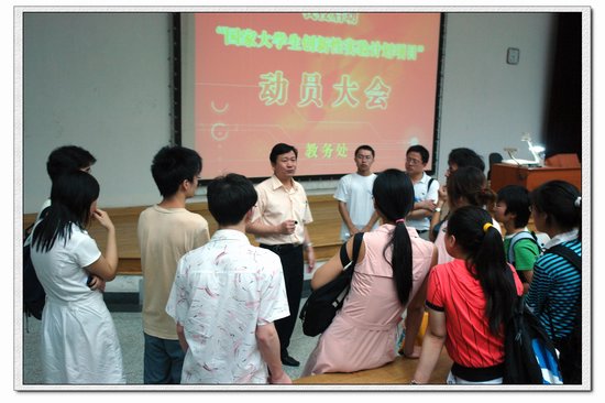 我校“國家大學(xué)生創(chuàng)新性實驗計劃”動員大會于2007年6月29日晚七時順利召開,來自于全校各個學(xué)院的一百多名學(xué)生和老師參加了動員大會。