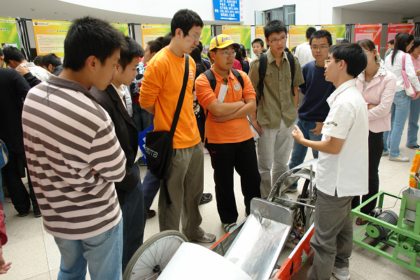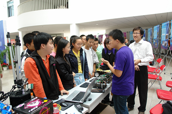 9月26日下午2:00~晚上7:30,本科生優秀創新作品展在良鄉校區學生服務中心舉行。60多名高年級同學攜帶40件作品參加了本次展覽。作品以嵌入式系統專題競賽、首都大學生機械創新設計大賽、大學生數學建模競賽、“挑戰杯”、全國大學生智能汽車競賽、Honda中國節能競技大賽等賽事的獲獎作品及國家大學生創新性實驗計劃、校SRIT計劃優秀作品為主,按照學科大類,分為信息、機電、理化、管文四個展區。展覽以實物演示和現場交流為主。有2000多名學生參加展覽,現場氣氛相當熱烈,很好的營造了良鄉校區的實踐教學氛圍,達到了預期目的。