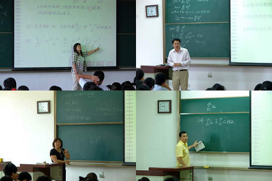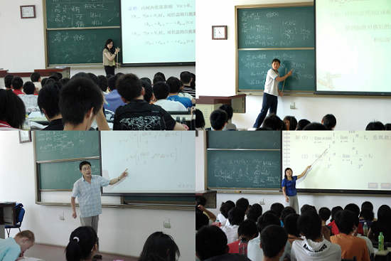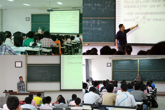 公共數(shù)學課程群由幾門較為重要的基礎(chǔ)課程組成:包括數(shù)學分析B,微積分A,微積分B,大學數(shù)學,概率論與數(shù)理統(tǒng)計,線性代數(shù),復變函數(shù)與積分變換和數(shù)理方程,這些課程均為本科生必修課。自2007年9月以來,公共數(shù)學課程群承擔著良鄉(xiāng)校區(qū)大一、大二兩個年級6000多名本科生的公共數(shù)學教學任務(wù),教學班的學生數(shù)在150人至200人。這些老師每周約有2-3天在良鄉(xiāng)校區(qū)上課,每天2-4學時,每周至少安排一天晚上給學生答疑,教師們家居北京地區(qū)四面八方,早晨踏著薄薄的晨霧到達良鄉(xiāng)開始上課,晚上披星戴月的回到家中。在教學任務(wù)繁重的情況下,公共數(shù)學課程群的老師以積極、樂觀、向上的工作態(tài)度圓滿完成了公共數(shù)學本科教學任務(wù)。