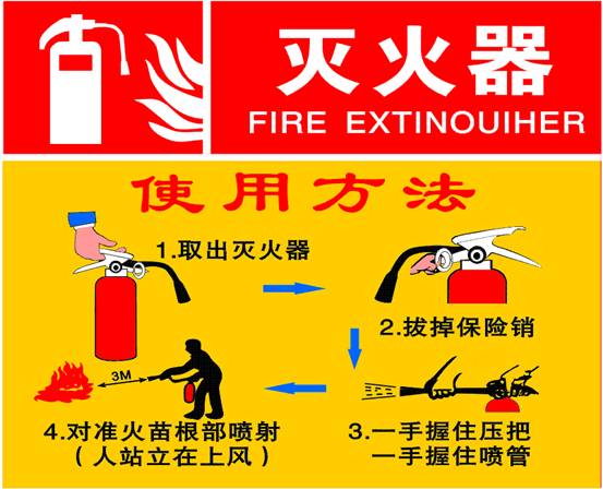 此外,要注意外出安全。出門不要攜帶酒精、汽油、摩絲、煙花等易燃易爆物品;進(jìn)入賓館、飯店或娛樂(lè)場(chǎng)所時(shí),要留意安全出口及消防栓、滅火器的位置等。外出前做到“四查”,即查看氣閥是否關(guān)嚴(yán)、電閘是否拉下、電源插頭是否拔下、易燃物是否安全。此外,外出前一定要鎖好門、關(guān)好窗,防止他人燃放的焰火飛入屋內(nèi),引發(fā)火災(zāi)。 如果發(fā)生火情、火險(xiǎn),要保持鎮(zhèn)靜,要合理利用滅火器進(jìn)行初期火災(zāi)的撲救,滅火器使用方式如下: