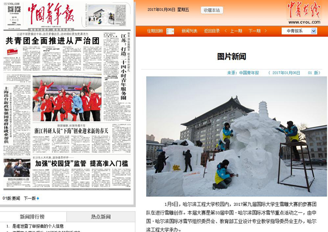 【中國青年報·報眼】圖片新聞|北理工雪雕隊出征2017年第九屆國際大學(xué)生雪雕大賽