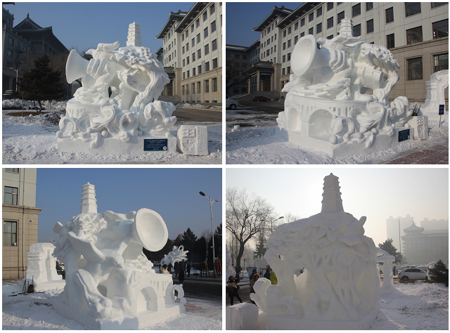 1月5日,哈爾濱工程大學(xué)校園內(nèi),2017第九屆國際大學(xué)生雪雕大賽的參賽團隊在進行雪雕創(chuàng)作。本屆大賽是第33屆中國·哈爾濱國際冰雪節(jié)重點活動之一,由中國·哈爾濱國際冰雪節(jié)組織委員會、教育部工業(yè)設(shè)計專業(yè)教學(xué)指導(dǎo)委員會主辦,哈爾濱工程大學(xué)承辦。