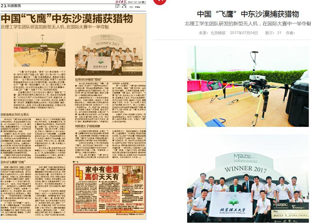 【北京晚報】中國“飛鷹”中東沙漠捕獲獵物——北理工學生團隊研發無人機在國際大賽中奪魁