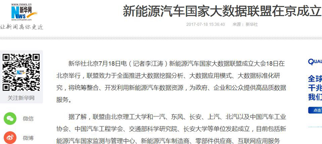 【工業微報·微信】新能源汽車國家大數據聯盟成立