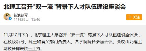 【新浪網】北理工召開"雙一流"背景下人才隊伍建設座談會