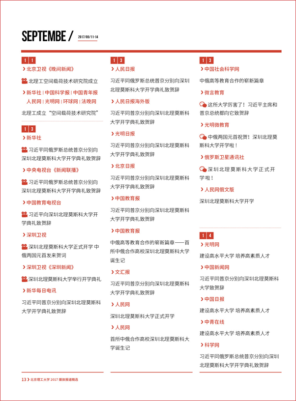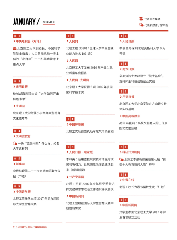 2017年,黨委宣傳部主動策劃學校重大活動外宣48次,共收集媒體首發報道678次,比去年同比增長約77%。新華社、《人民日報》《光明日報》《北京日報》《中國科學報》《科技日報》等媒體,通過平媒、網媒、新媒體以及手機客戶端發布我校報道600余次,中央電視臺、北京電視臺、中國教育電視臺等電視媒體報道50余次,積極打造對外宣傳的“全媒體”格局。