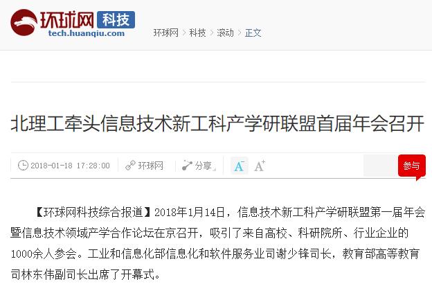 【環(huán)球網(wǎng)】北理工牽頭信息技術(shù)新工科產(chǎn)學(xué)研聯(lián)盟首屆年會召開