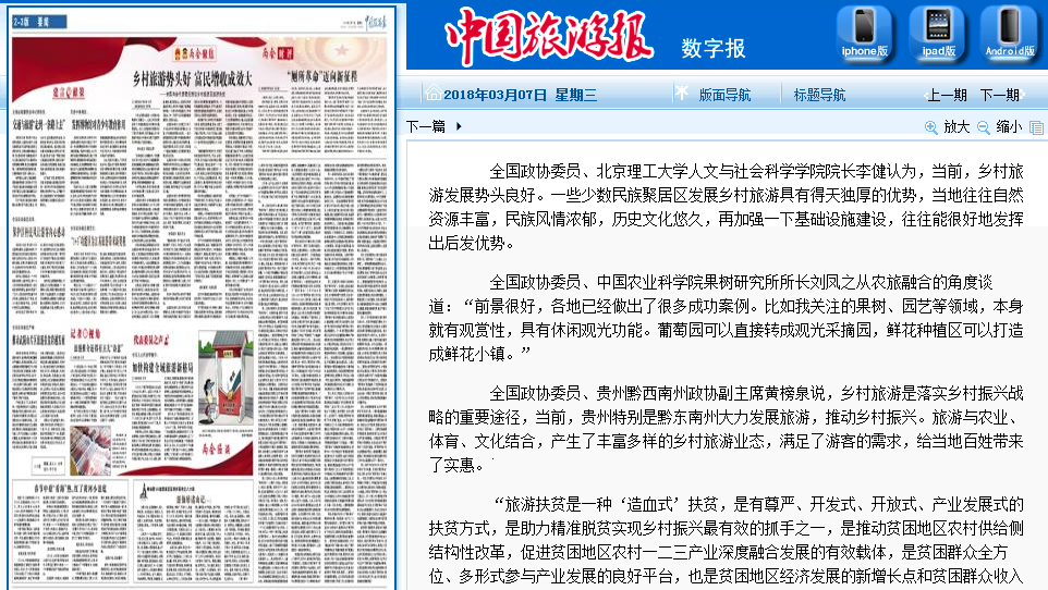 【兩會(huì)·中國(guó)旅游報(bào)】李健委員:鄉(xiāng)村旅游勢(shì)頭好 富民增收成效大