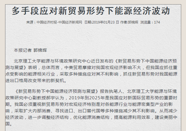 【中國經濟時報】多手段應對新貿易形勢下能源經濟波動