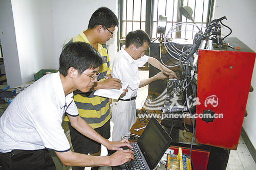 江西匯爾油泵油嘴有限公司積極與北京理工大學合作開發(fā)新產(chǎn)品,增強企業(yè)發(fā)展后勁。7月9日,北京理工大學組織有關人員在該公司進行柴油機電控高壓共軌燃油噴射系統(tǒng)實驗,共同開發(fā)新產(chǎn)品。本報記者何深寶攝