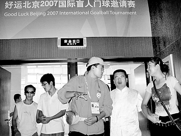 9月14日,在北京理工大學(xué)體育館國(guó)際盲人門(mén)球邀請(qǐng)賽上,該校理學(xué)院博士生黨支部的學(xué)生為來(lái)自張成盲人按摩學(xué)校的19位盲人導(dǎo)游,讓他們用心靈觸摸到這座2008年北京奧運(yùn)會(huì)排球比賽二級(jí)場(chǎng)館。