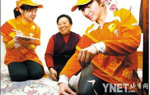 ■志愿者為空巢老人高秀存度量鞋碼■攝影/本報記者賈婷耿蕾