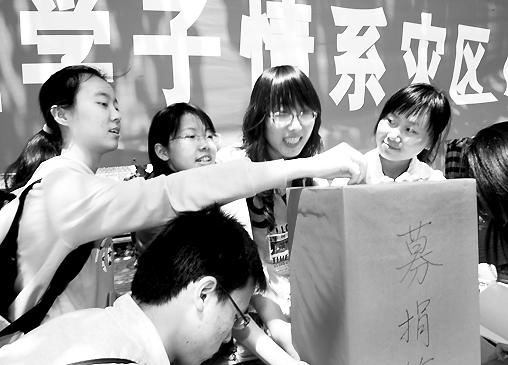 5月13日,北京理工大學學生在校園里踴躍捐款,該校研究生會、學生會和社團聯合會發起倡議向遭受地震災害的四川省都江堰市聚源鎮中學獻愛心,當天就募集數萬元。本報記者劉新武攝