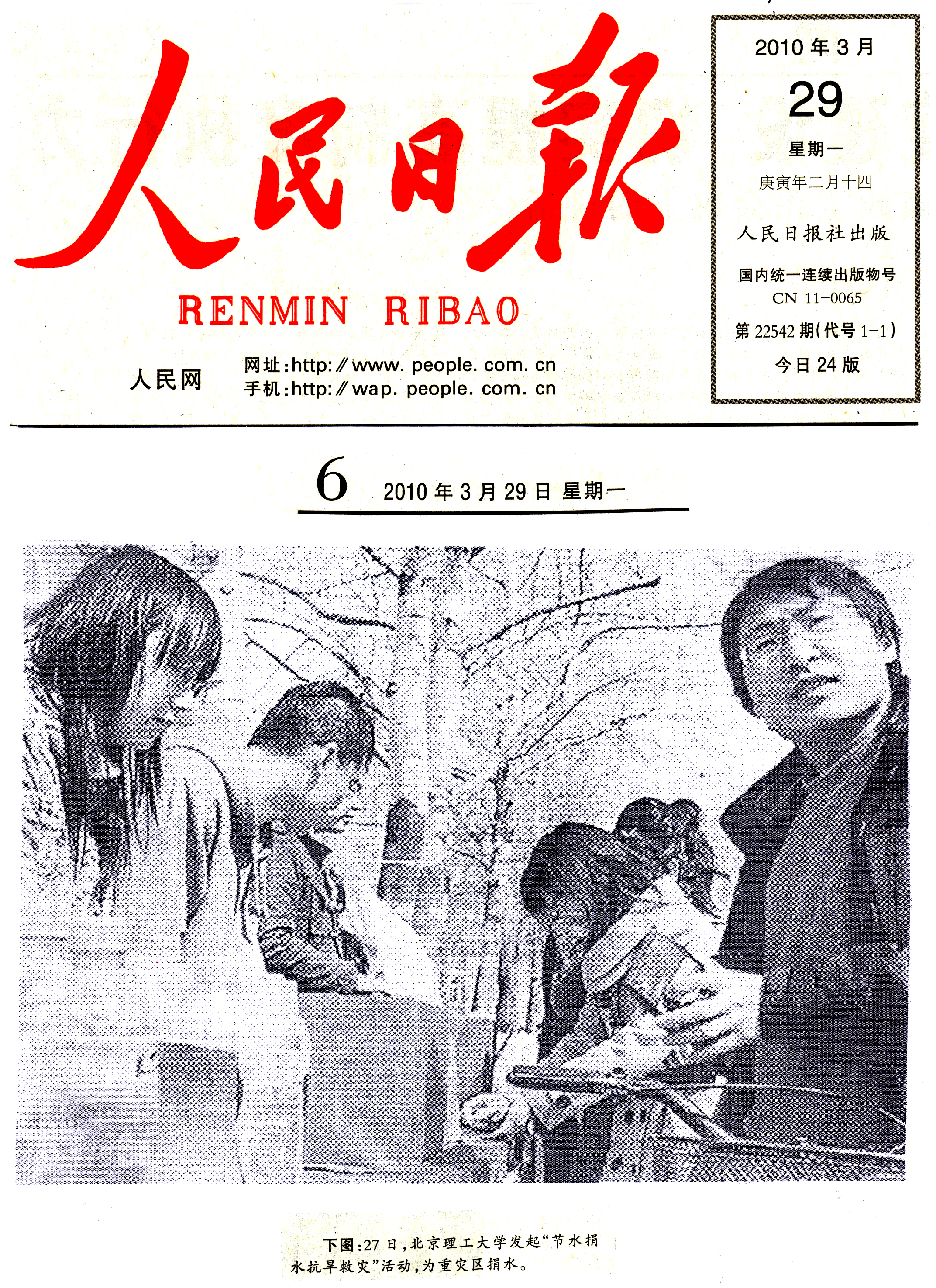 5、《現(xiàn)代教育報(bào)》以“北京學(xué)生踴躍為西南旱區(qū)捐款捐水 愛心之水滋潤祖國西南”為題進(jìn)行了報(bào)道。