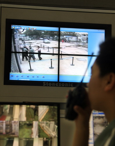 日前,北京理工大學附屬小學門口有一名可疑人員徘徊,監控人員發現后,通知門衛查詢,得到消息的校園特勤人員迅速到場,將這位可疑人員帶離現場。這是一次校園安全演練,也是北京理工大學與冠林盈科智能系統集成有限公司共同研制的智能監控、報警及快速處置的一整套聯動系統的首次啟用。中國教育報記者王鷹攝