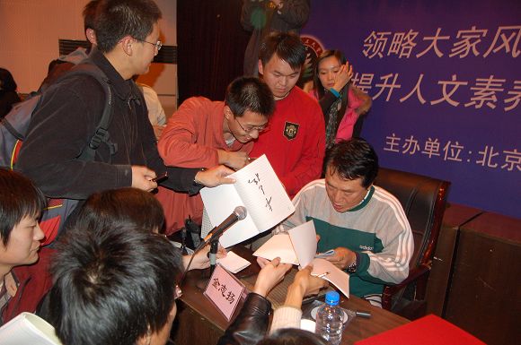 報告會之后,聽眾和師生球迷在爭先恐后地請金志揚教授簽名留念。