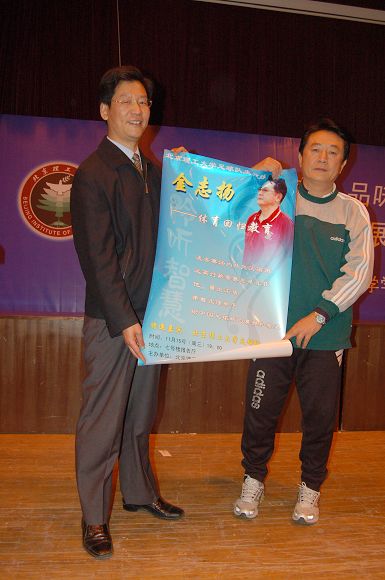 由學生工作處主辦的本學年第十期聆聽智慧名家系列講座于2006年11月15晚19:00在7號樓報告廳舉行,我校足球隊總教練金志揚教授為我校師生奉獻了一場精彩的“體育回歸教育”專題報告會,講座由學生工作處處長劉明奇同志主持。
