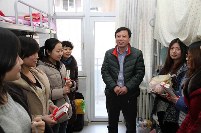 2015年1月21日中午,北理工發展規劃處黨支部全體成員來到良鄉校區博雅宿舍樓,親切看望正在考試復習周的外國語學院學生黨員們,不僅為黨員同學們送來了書籍、水果,而且送來了對期末考試的鼓勵和祝福。此次活動還邀請到北理工機關黨委書記包麗穎、外國語學院黨委書記陳大明、院黨委副書記副院長吳文君以及學院輔導員等共同參與。