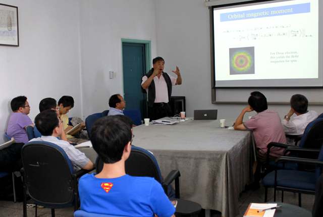 7月3日下午,第四場學術講座由物理學院協辦,邀請了美國德克薩斯大學奧斯汀分校的牛謙教授為我校做了題為“Orbital Magnetism and Landau Levels”的報告。牛謙教授向大家講述了貝利曲率和反常霍爾效應之間的內在聯系,以及一階理論框架下能夠成功計算的物理量和它必然會遇到的局限性,并詳細講述了他最新的研究成果——二階理論框架下的波包動力學問題。報告結束后,老師和同學提出了很多的疑難問題,牛謙老師一一進行了詳細解答。老師和同學都學習到了很多前沿的物理研究內容,為自己的科研之路提供了幫助。