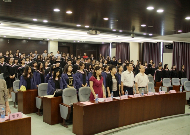 2014年6月30日上午,北京理工大學(xué)外國語學(xué)院2014屆夏季畢業(yè)典禮暨學(xué)位授予儀式在研究生教學(xué)樓101報告廳隆重舉行。外國語學(xué)院院長李京廉,黨委書記陳大明,副院長姜愛紅,副院長張萊湘,副書記、副院長吳文君,校友代表毛碩,各系主任及部分學(xué)生家長出席了此次畢業(yè)典禮。
