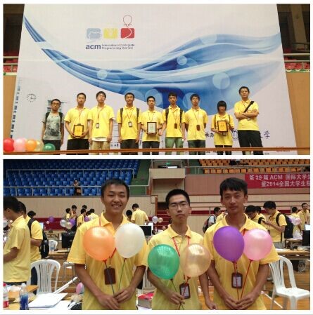 ACM國際大學生程序設計競賽上海程序設計邀請賽于2014年7月12日在上海大學舉行,北京理工大學生軟件科技創新創業基地派出3支隊伍參加上海賽區的邀請賽,其中本科2012級的劉明漢、秦歡、牛沖同學組成的“2Bpencil”隊伍在比賽中獲得銀牌的好成績!此外,由潘虹宇等組成的“akemi_Death_last”隊伍和朱翼等組成的“BIT_Yukiiiiii”隊分別獲得了銅牌的優秀成績。
