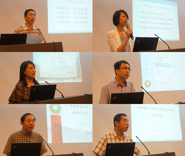 心理咨詢與教育中心專職副主任李旭珊介紹了大學生心理健康教育的相關內容,以實際案例說明班主任應如何處理特殊情況;學生資助辦公室主任孫西艷介紹了大學生資助政策、獎助學金體系以及勵志類社團建設等內容;基礎教育學院機械學部副主任張磊梳理了新生報到前三天班主任應完成的各項重要工作及注意事項;教務處副處長楊剛介紹了本科生學籍、成績、研究生推免、學生評教和教學紀律等本科教學管理中的若干規定;保衛處副處長薛杰以豐富的案例,闡釋了學生防火、防盜、防騙及人身安全方面的知識。