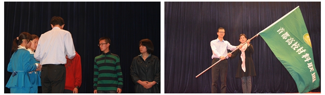 閉幕式上還為在本次文化節中有突出表現的各高校材子材女們頒發獲獎證書,以表彰他們在文化節各項活動中表現出來的不屈不撓、努力奮斗的精神。作為下屆材料文化節的承辦方,我院黨委副書記、副院長張艦月從北京航空航天大學材料學院黨委副書記張江手中鄭重接下首都高校聯盟旗幟。