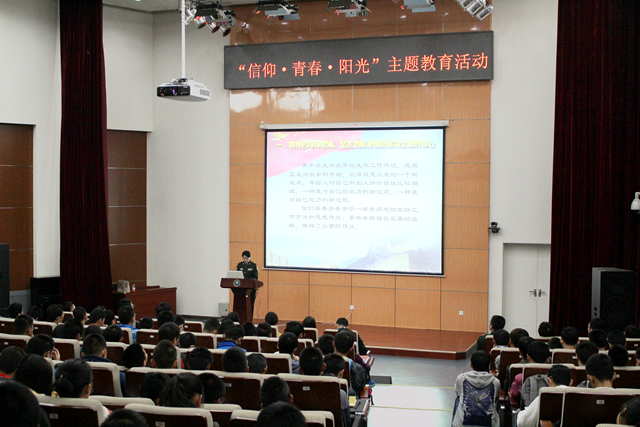 崔玉玲少將談到大學生最重要的是擁有信仰。信仰對人生具有巨大的定向作用和指導作用,為一個人提供了奮斗終身的精神支撐和精神依靠。作為當代青年,作為推動“兩個一百年”奮斗目標實現的重要力量,作為祖國的接班人,必須積極響應祖國和組織的號召,錘煉青春,樹立崇高的信仰,以青春之活力,勇往直前。作為大學生,要努力學習科學文化知識,用知識武裝頭腦;要學會團隊協作,眾志成城,成就團隊輝煌。臺上,崔玉玲少將侃侃而談;臺下,數百名觀眾聽得津津有味,頻頻點頭。