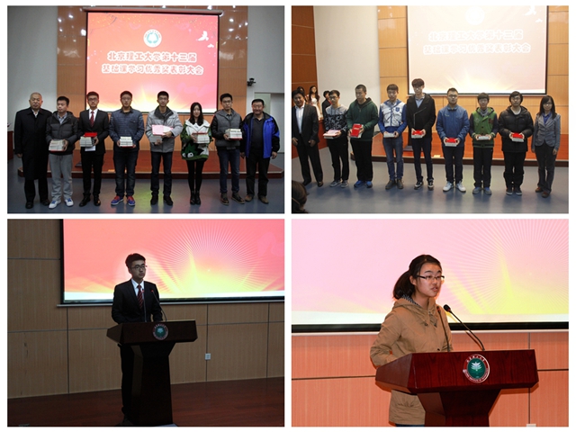 基礎(chǔ)教育學(xué)院常務(wù)副院長(zhǎng)張青山宣讀了《北京理工大學(xué)第十三屆基礎(chǔ)課學(xué)習(xí)優(yōu)秀獎(jiǎng)表彰決定》,飛行器設(shè)計(jì)與工程01721301班等11個(gè)班級(jí)和詹潔等224名學(xué)生分別榮獲集體獎(jiǎng)和個(gè)人獎(jiǎng)。隨后與會(huì)領(lǐng)導(dǎo)為受表彰集體和個(gè)人代表頒發(fā)了榮譽(yù)證書和獎(jiǎng)勵(lì)書籍。