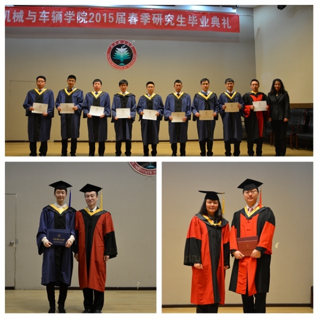 2015年2月3日上午,北京理工大學機械與車輛學院2015屆(春季)研究生畢業(yè)典禮在學校七號樓報告廳隆重舉行。機械與車輛學院黨委書記閻艷,副院長左正興,黨委副書記、副院長范文輝和研究生導師代表以及學院研工委相關(guān)教師一起,與全體2015屆春季畢業(yè)研究生共慶畢業(yè)。