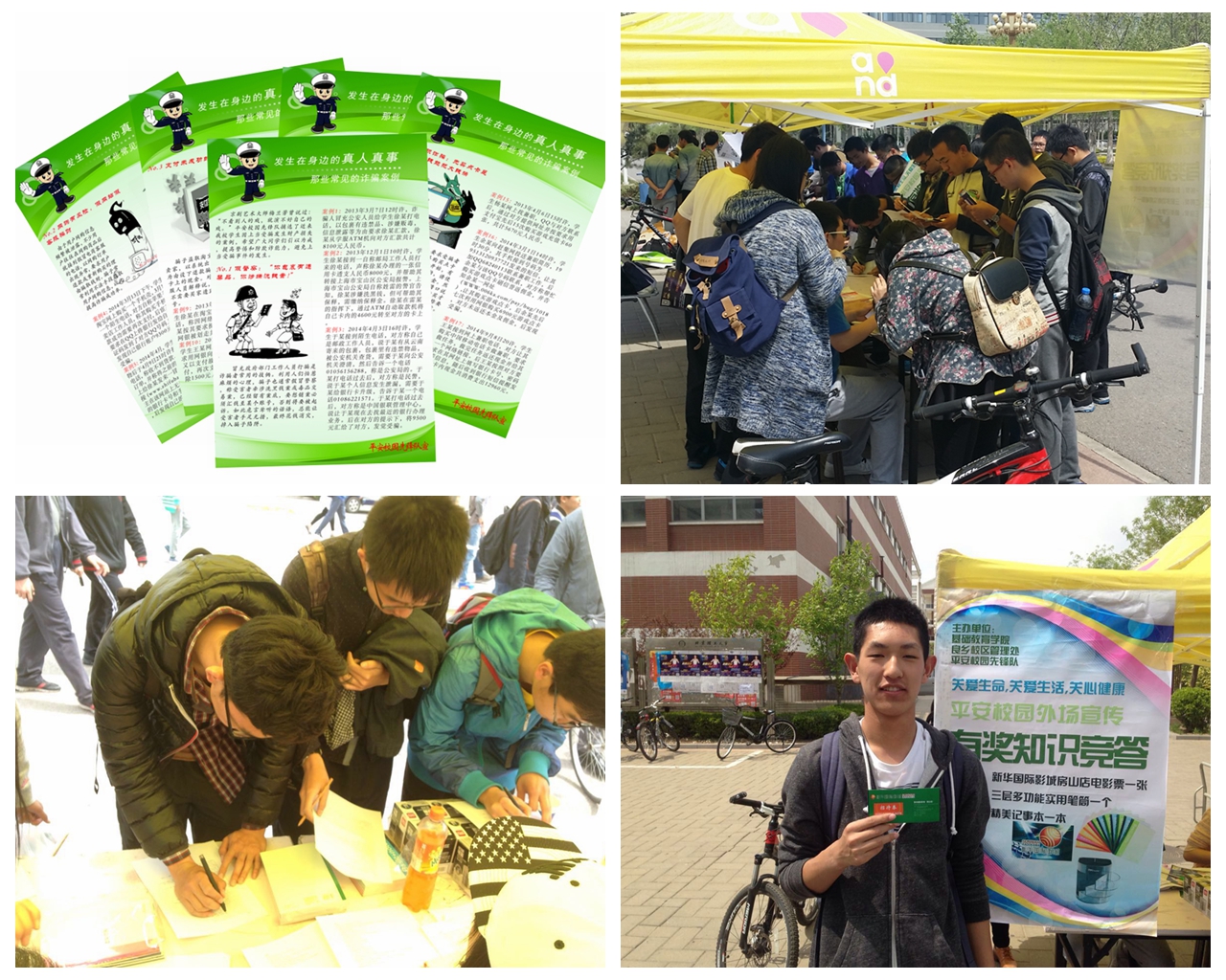 此次活動共展出展板30余塊,內容涉及防火、防盜、防詐騙、地震、毒品、急救、心理健康、消費者權益保護等涉及學生生命、健康和生活方面的知識及典型案例,尤其是展出了2014年良鄉校區學生因詐騙遭受經濟損失的“真人真事”案例集,期望廣大學生能夠引以為戒,提高警惕和防其詐能力,避免受騙事件的發生。