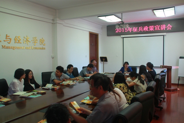 為加強征兵政策宣傳,做好2015年大學生應征入伍工作,6月3日上午,北京理工大學黨委武裝部在主樓317會議室舉行“2015年征兵政策宣講會”。黨委武裝部呂晶主持會議,各學院征兵負責人共計20人參加會議。