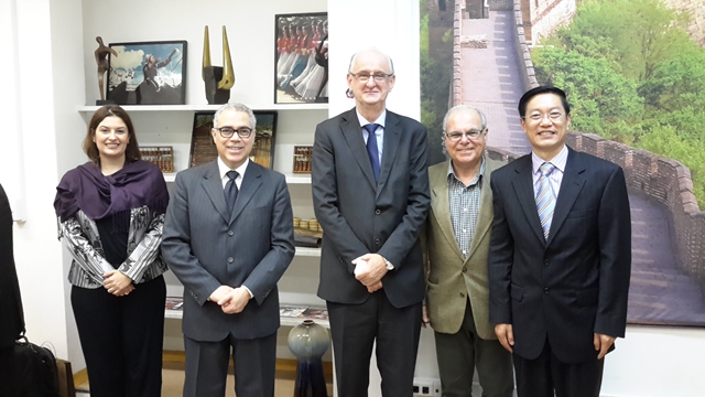與巴西圣保羅大學孔子學院安東尼奧院長(中)和部分人權學者合影留念