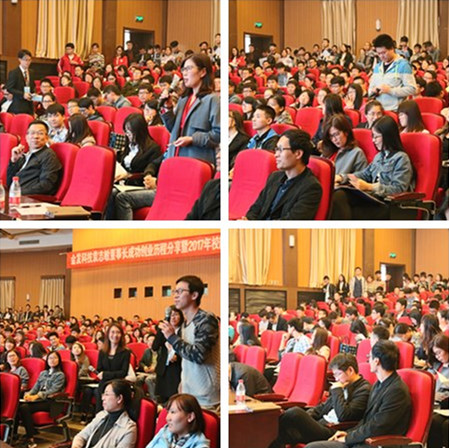 袁志敏向在座的學子們分享了自己的創業歷程。回首當年創業的艱辛,如今成功的喜悅,他表達了自己的萬千感慨。二十多年來,金發科技從無到有,從小到大,自主創新碩果累累,填補國內多項空白,徹底打破國內改性塑料長期依賴進口的局面。金發科技的驕人業績,每一步成長的足跡,無不凝聚著股東、政府領導的大力支持、經營班子的精心運作、全體員工的辛勤勞動以及社會各界的厚愛。袁志敏鼓勵在座的學弟學妹們,不要懼怕失敗,因為創業注定是由很多失敗堆積而成的,年輕經受得起失敗,走過荊棘,必將迎來成功。