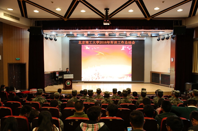 為總結2016年軍訓工作,傳承經驗,表彰先進。10月26日,北京理工大學2016年軍訓工作總結會在中關村校區七號樓報告廳舉行。校長助理郝志強、中國人民解放軍駐北京理工大學后備軍官選拔培訓辦公室主任秦作文、學生工作部部長郭彥懿,以及軍訓全體帶隊干部、國防生教官出席了本次大會。