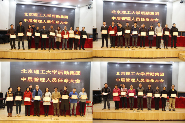 2016年12月16日下午2:00,后勤集團中層管理人員任命大會在7號樓一層報告廳隆重召開。出席大會的學校領導有常務副校長楊賓,后勤集團董事會成員:校黨委組織部部長張笈、校財務處處長任世宏、國有資產管理處處長宋希博,后勤集團現職領導、保留處級待遇領導、集團現職中層管理人員、被任命的中層管理人員、集團部門經理(主管)、集團職代會全體代表參加了大會。任命大會由后勤集團黨委副書記姜金鳳主持。后勤集團總經理李晉平宣布了后勤集團中層管理人員任命決定。