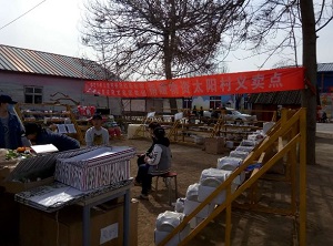 志愿者和孩子們一起包包子 志愿者們幫助義賣