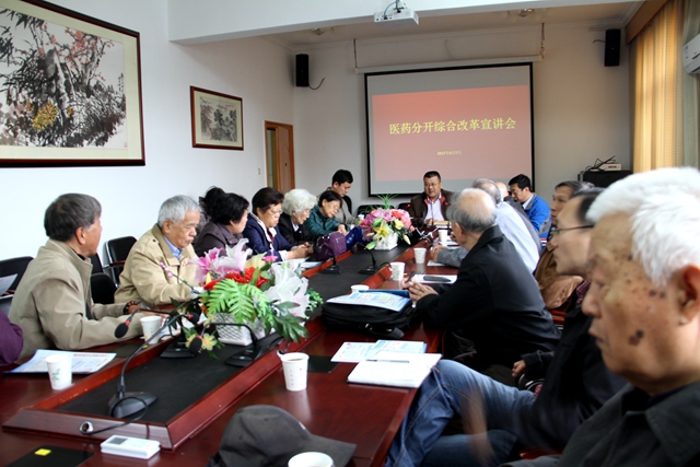 2017年4月7日上午8:30,北京理工大學離退休工作處在遠志樓210會議室組織召開醫藥分開綜合改革政策宣講會。會議邀請校醫院院長孫勝林、校醫院黨總支書記劉川主講,離退休教職工黨委各支部支委代表以及學校家屬區各片區負責人參加會議,會議由離退休工作處處長周連景主持。