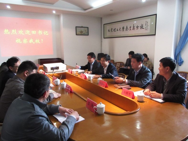 4月13日下午,秦皇島市委副書記、北戴河區委書記田金昌,率區委常委、區委辦主任馮志遠,副區長高銀山,區教育局局長王曉光等視察北理工秦皇島分校。秦皇島分校校長兼直屬黨支部書記時春山向田書記一行匯報了分校的發展歷史、辦學定位、學生結構規模等基本情況,并介紹了少數民族預科教育相關政策規定。
