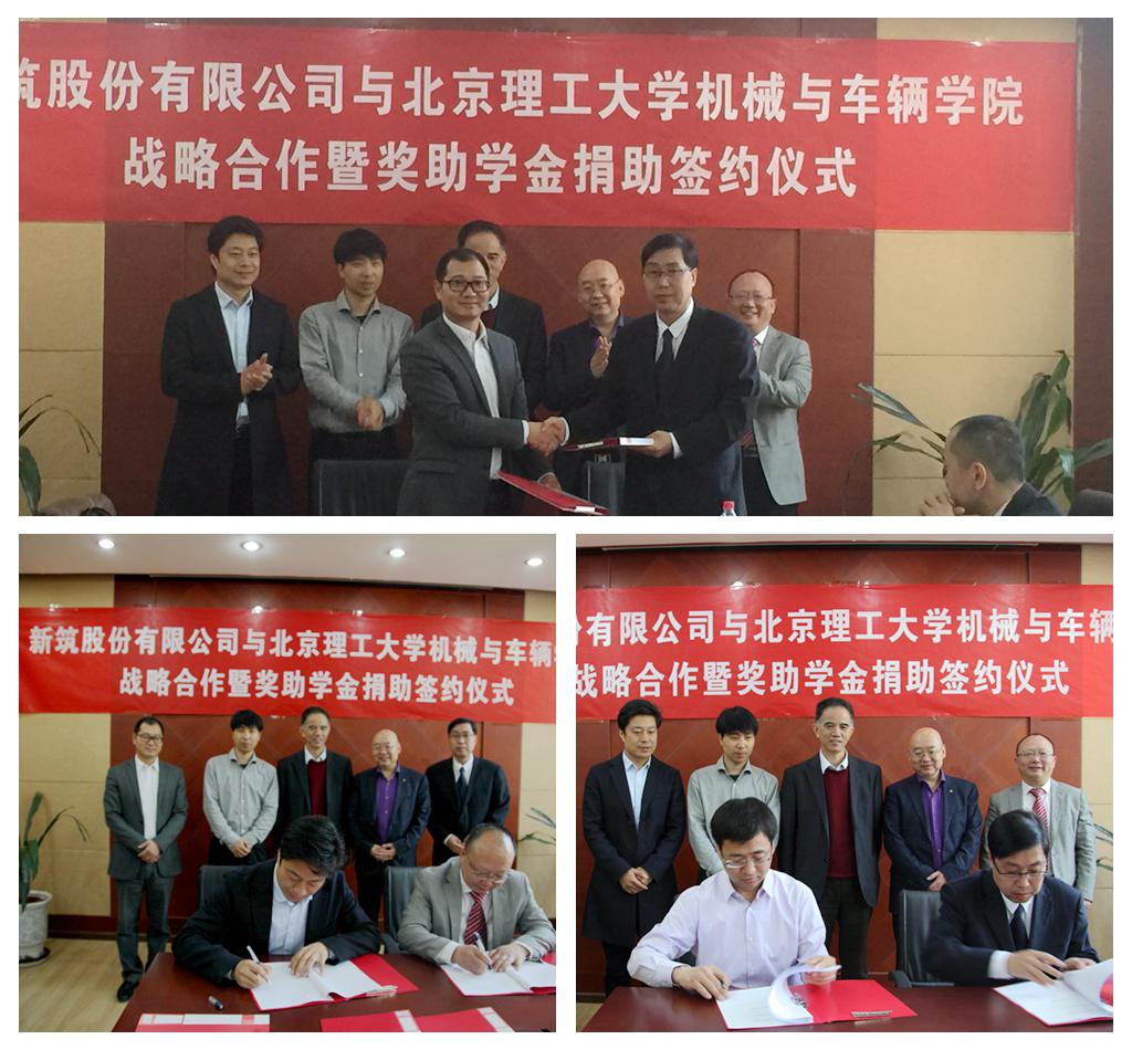 會上,北理工機械學院與成都新筑股份公司簽署了戰略合作框架協議和新筑獎助學金合作協議。雙方表示,希望通過此次合作,以新筑路橋在新能源汽車領域的產業化能力為依托,以北理工在新能汽車領域的先進技術為支撐,推動雙方在科學研究、人才培養、產學研基地建設等多領域的深度合作,促進雙方共同發展。