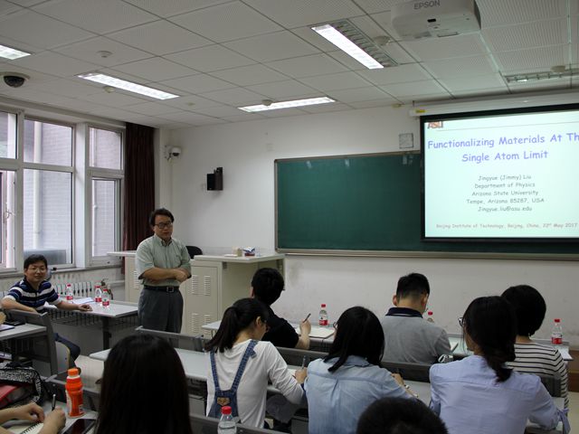 應(yīng)北理工材料學(xué)院張加濤教授的邀請(qǐng),美國(guó)亞利桑那州立大學(xué)物理系納米中心主任,國(guó)際頂級(jí)高分辨電鏡專家Jingyue Liu教授,于2017年5月20至22日訪問了北京理工大學(xué)材料學(xué)院。