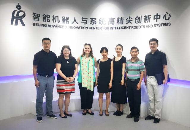 Lori A. Hurvitz一行參觀了我校智能機器人與系統高精尖創新中心和電動車輛國家工程實驗室,在中心副主任周勇和實驗室王彭徽等老師的介紹下,感受到了北理工在前沿科技領域的學科特色。