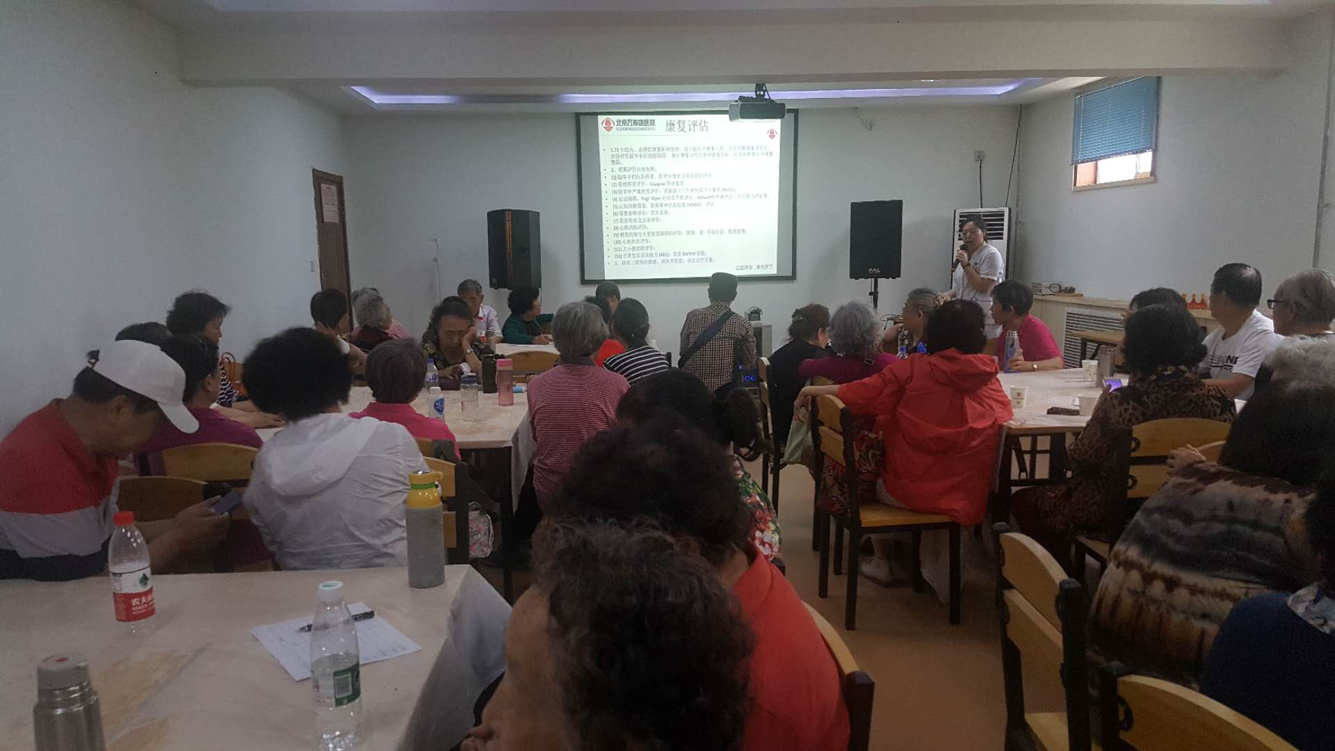 初夏的太陽已有幾分毒辣,對于老同志來說,在炎熱的夏季外出時要格外注意身體的健康情況,健康踏青避免健康受損至關重要。這次的北塢之行,得到了北京萬壽康醫院的大力支持,不僅安排醫生護士全程陪同,而且為每位老人準備了健康營養的午餐,餐后由黃祝清醫生和康復師孫邈為各位離退休老師講解夏日老年病防治以及老年康復的知識。