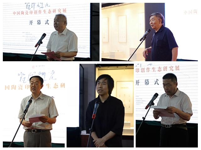 展覽通過“文獻考察”與“作品展覽”兩部分將陶瓷印的歷史和當代發(fā)展進行了梳理。“作品展覽”通過特邀和征稿的方式展出108位藝術(shù)家的200余件陶瓷印的印章原作,另每位作者還在印屏上展示了3至10幅印蛻作品。本次展出的“征稿作品”部分,是評委會對應征參選的作品進行了評選,評為獲獎作者和參展作者兩部分。李和章、王鏞、陳國斌、畢開艾、崔晗、李長春在開幕式上為姜軼、譚玉祥、武拙園、王志國、徐明春、崔紅濤等6名獲獎者頒獎。