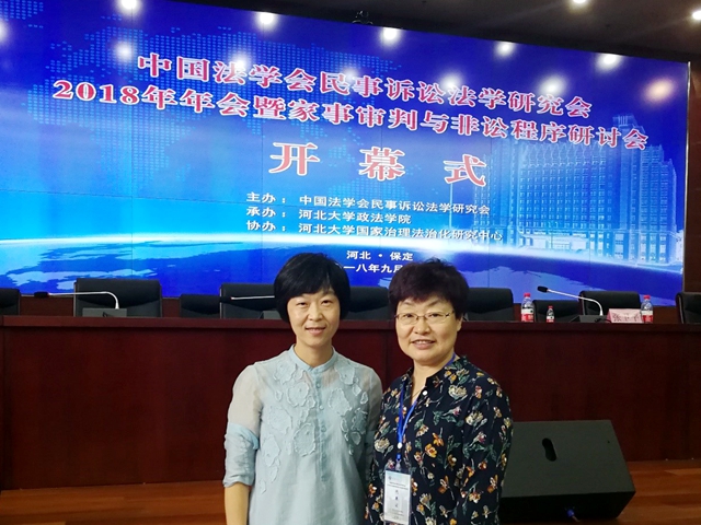 9月15日,一年一度的中國民事訴訟法學研究會年會在河北保定召開。此次會議由中國民事訴訟法學研究會主辦,河北大學政法學院承辦。中國法學會、河北省高級人民檢察院、河北省法學會等單位領導,清華大學、北京大學、中國政法大學、北京理工大學等全國各大高校民事訴訟法學專家學者,地方司法機關、法律服務機構的法律實務工作者以及新聞出版機構人員共計200余人參加了此次會議。本屆年會的會議主題為“家事審判與非訟程序”。法學院教授張艷麗、副教授于鵬、博士李亞楠應邀參加本次年會,張艷麗在大會上作主題報告。