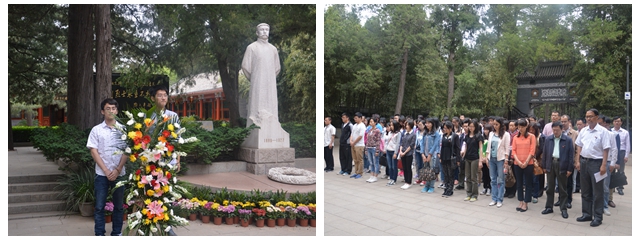 今年是中國共產黨建黨94周年,也是北理工第十四次黨代會召開之年。5月6日下午,生命學院黨委組織教師和學生黨員,聚集在李大釗烈士陵園,隆重舉行新黨員入黨宣誓和老黨員重溫入黨誓詞活動,向李大釗同志及革命烈士們表達崇高的敬意,也是號召廣大黨員以實際行動迎接黨的生日及學校第十四次黨代會的召開。參加此次活動的有學院黨委書記劉存福,副院長唐曉英,黨委副書記、副院長劉曉俏、黨委副書記胡士坤(掛職)以及教師黨員和學生黨員。活動由劉曉俏主持。