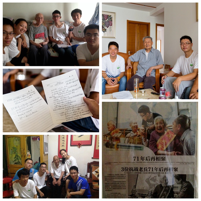 顏祿淼同學所在的實踐團隊,拜訪了許多昔日的抗日英雄——投筆從戎的葉于良老人,衛生隊的張翠萍老人,微山湖游擊隊的政委孫新民老人等;曹文濤同學的實踐團隊,同樣對老兵給予了關注,拜訪了參加淞滬戰役等大戰的范希賢老人,羅啟忠老人等。