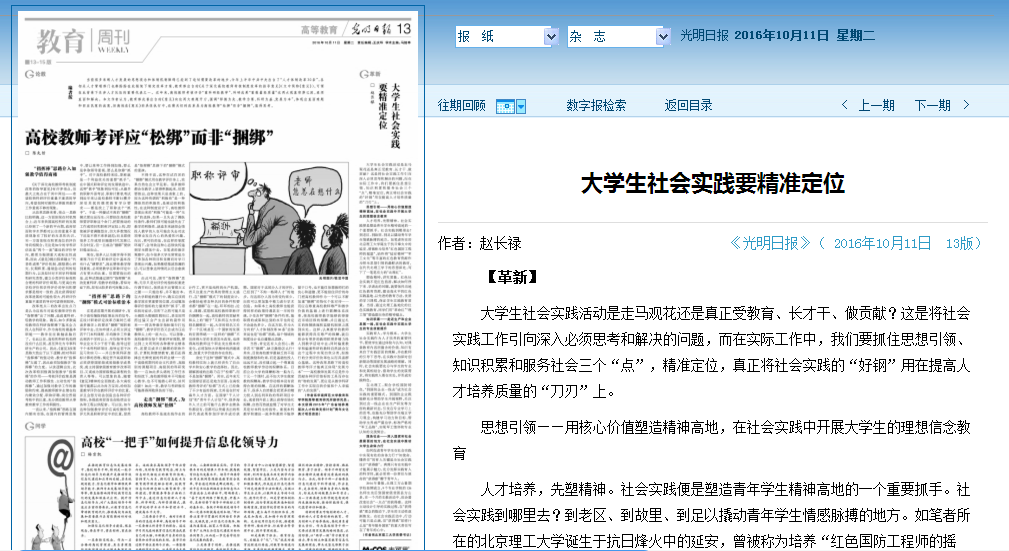 【學(xué)習(xí)園地】黨委書(shū)記趙長(zhǎng)祿在光明日?qǐng)?bào)發(fā)表評(píng)論文章:大學(xué)生社會(huì)實(shí)踐要精準(zhǔn)定位