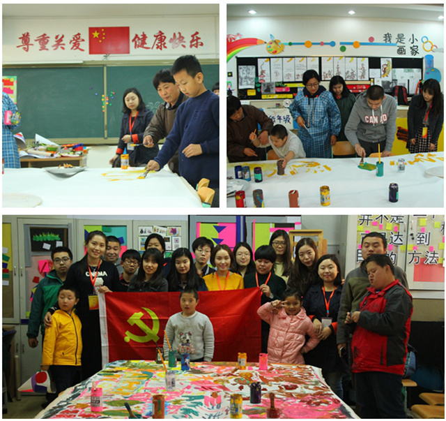 學(xué)院教職工第一黨支部攜手2015級(jí)研究生第三黨支部與北京市朝陽(yáng)區(qū)安華學(xué)校開(kāi)展“關(guān)愛(ài)匯聚力量,色彩繪出笑顏”共建活動(dòng),活動(dòng)以“接納包容,了解尊重”為原則,以關(guān)愛(ài)特殊兒童群體的支教服務(wù)為載體,以為自閉癥兒童帶來(lái)點(diǎn)滴快樂(lè)為宗旨,積極融入社會(huì)不同人群的生活,并盡己所能幫助他人。師生黨員先后于5月、10月、11月多次前往安華學(xué)校開(kāi)展主題黨日活動(dòng),以各種藝術(shù)形式為媒介帶領(lǐng)他們創(chuàng)作繪畫(huà),共同策劃繪制美麗校園長(zhǎng)卷,引領(lǐng)他們用藝術(shù)的方式表達(dá)情感;同時(shí)教職工黨員指導(dǎo)學(xué)生黨員共同為安華學(xué)校的美術(shù)教師設(shè)計(jì)制作了形式多樣的教學(xué)用具。