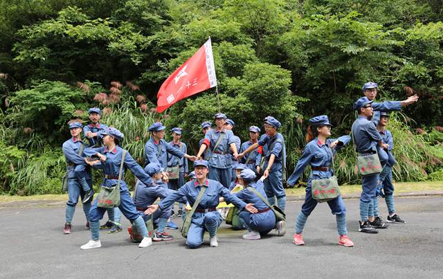風華正茂,揮斥方遒。無論是泥濘坑洼的山間小路,還是大雨滂沱的突如其來,“紅星班”的全體學員從不叫苦叫累,攜手向前從容應對。訓練場上,他們化身“二十八團”與“三十一團”的鐵血戰士,用堅不可摧的凝聚力、眾志成城的信念奮勇拼搏,取得一次次的輝煌與勝利。紅歌唱響的舞臺上,他們歌聲嘹亮、激情飛揚,用學生最質樸的情懷詮釋對于曾經那段戰爭歲月的緬懷,及對今日幸福生活來之不易的珍惜。文藝匯演的過程中,他們學以致用、行知結合,將在井岡山上經歷過的歲月、了解到的故事、聽說來的事跡、感觸過的人物,用鮮活的表演展現在眼前,用精神觸碰精神,以心靈貼近心靈。舞臺劇的編排讓張子清等一批批英勇不屈的革命人士精神扎根到學生心中,這種熏陶與洗禮讓學生加深了對于紅軍精神的理解。新時代大學生的睿智與擔當,在“紅星班”的實踐中體現的淋漓盡致。